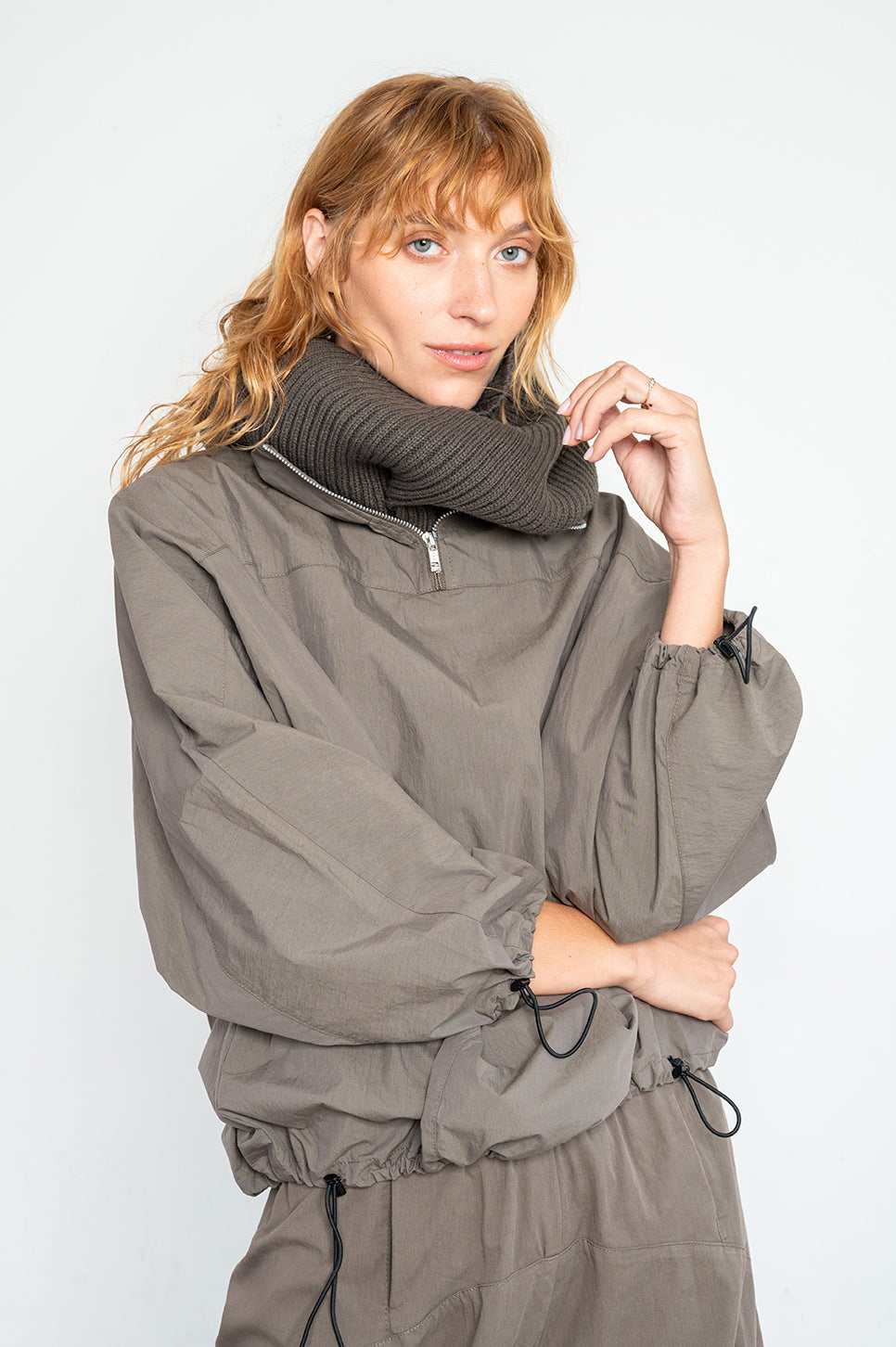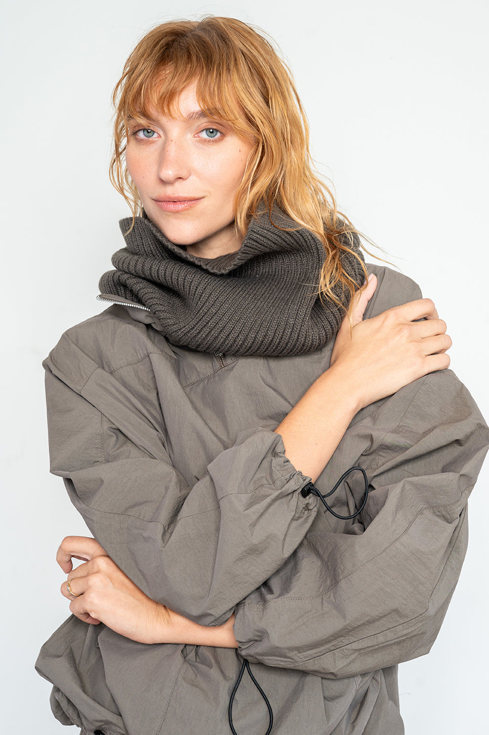 צעיף טיוב סגור עבה ומחמם, מבד סרוג רך וגמיש.