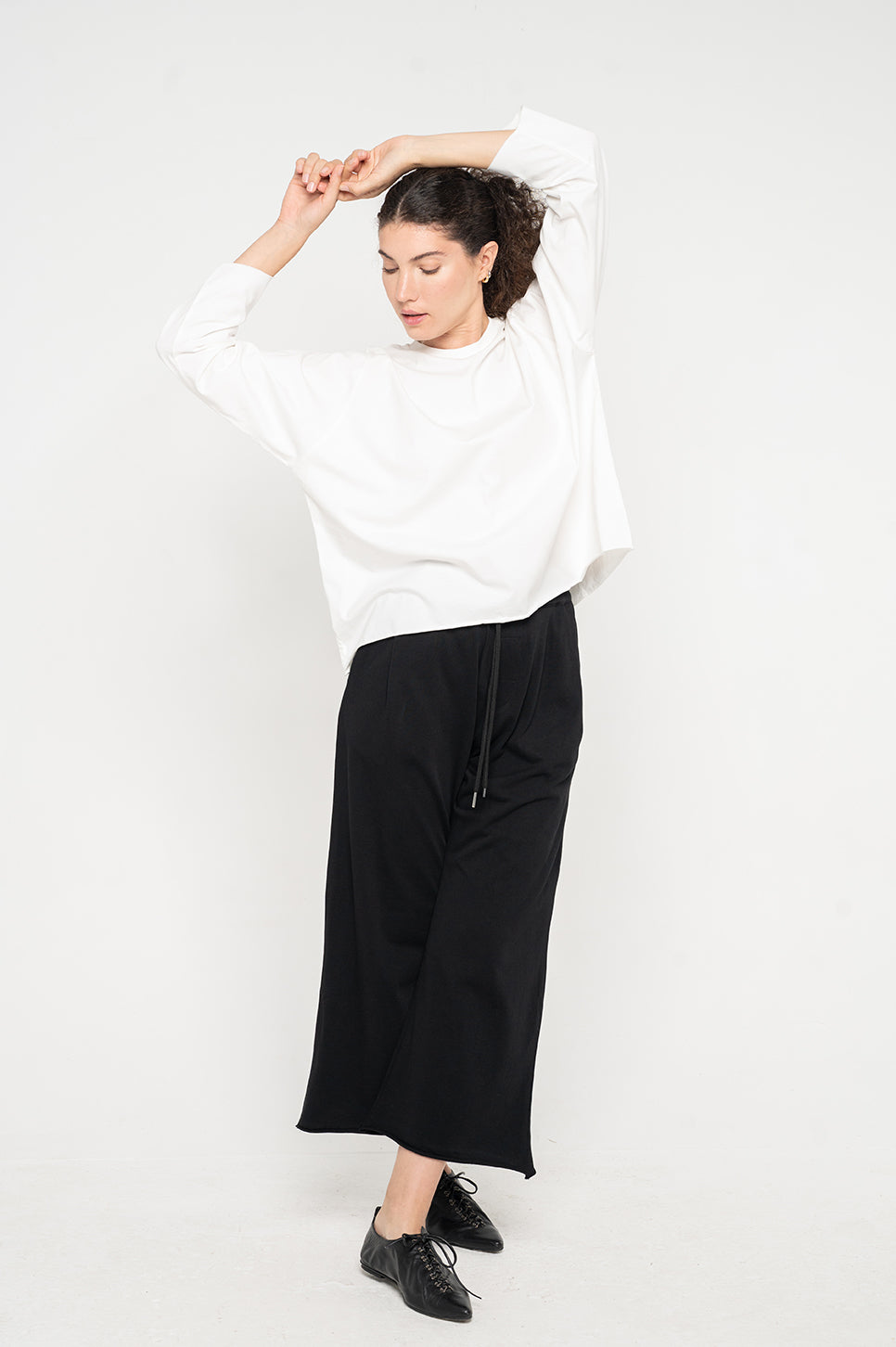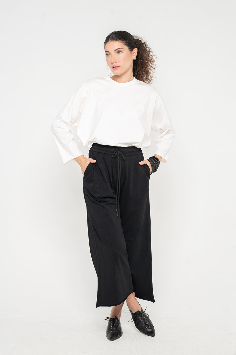 מכנסים בגזרה רחבה עם שני כיסי צד, גומי במותן ושרוך כותנה להידוק. עשויים בד כותנה רך ונעים שמאפשר לנוע ולנשום.- סומי: גובה 172 ס"מ. היקפים: חזה 82 ס"מ I מותן 61 ס"מ I אגן 88 ס"מ, לובשת מידה 0.