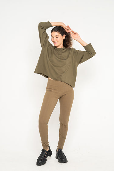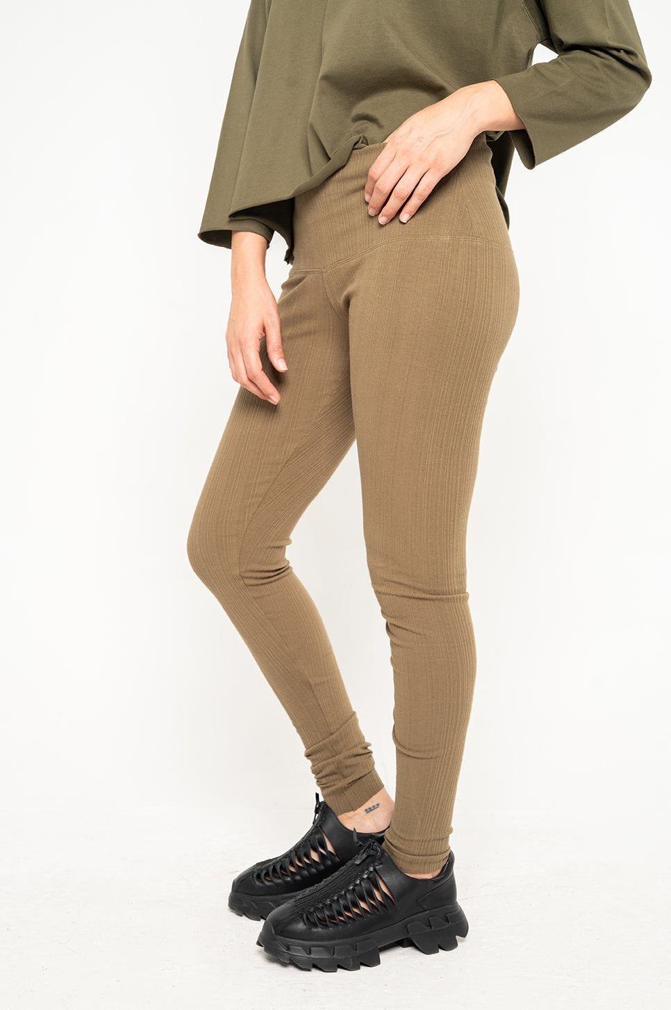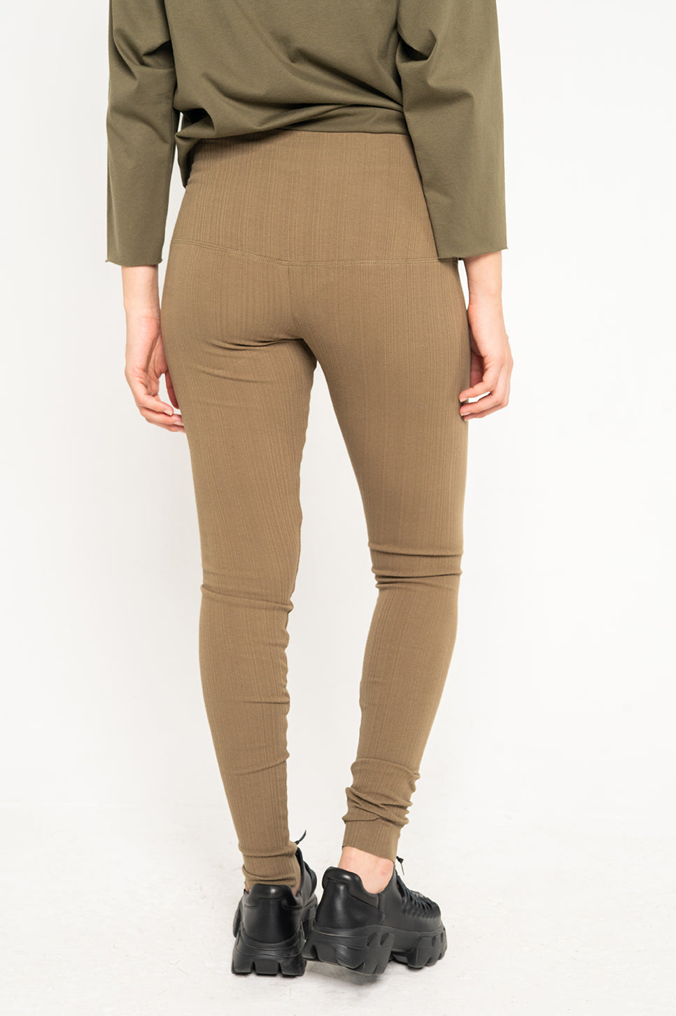 מכנסי טייץ עם מנג'ט רחב באיזור הבטן, עשויים בד ריב נעים בעל טקסטורת פסים.