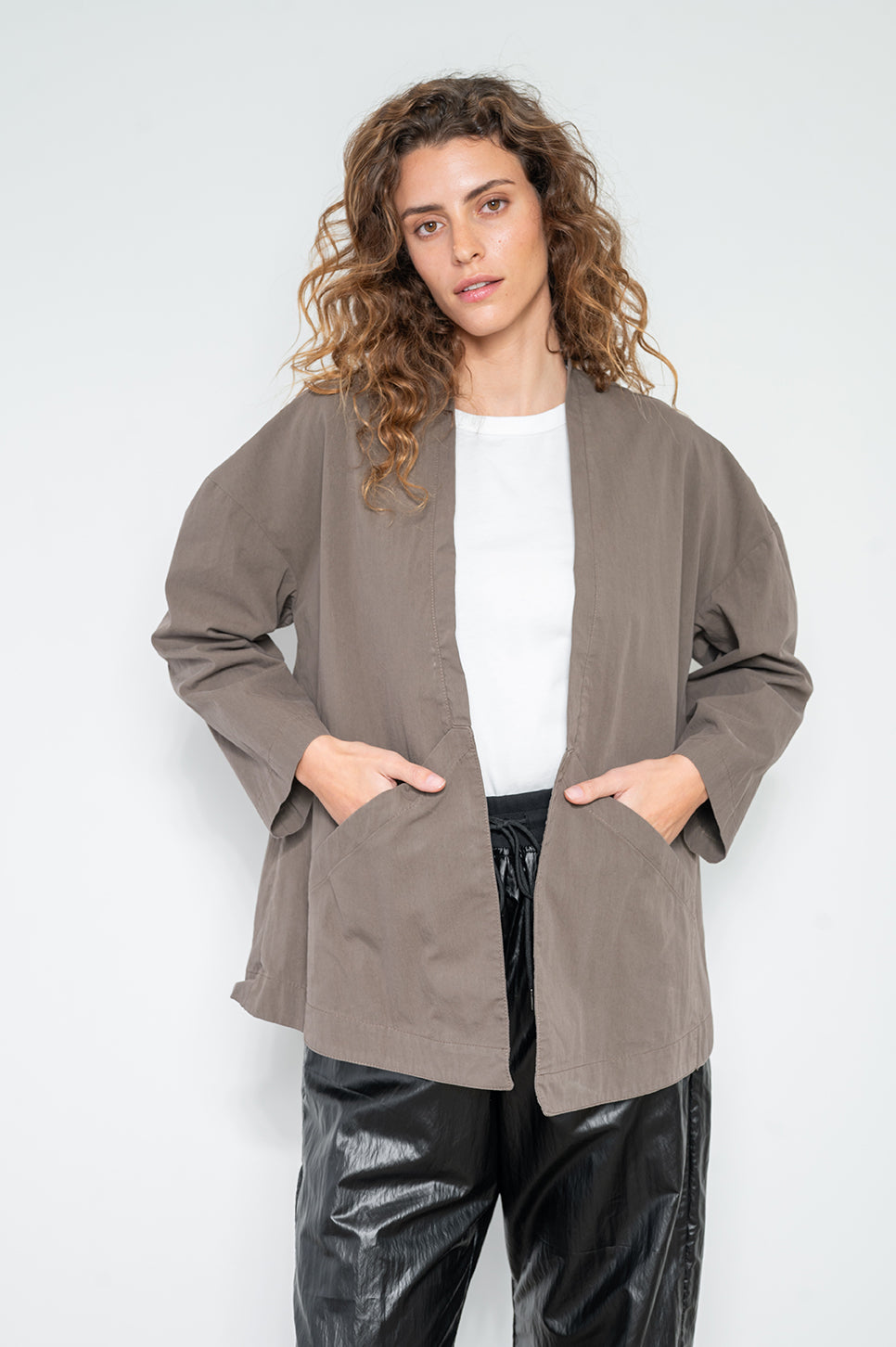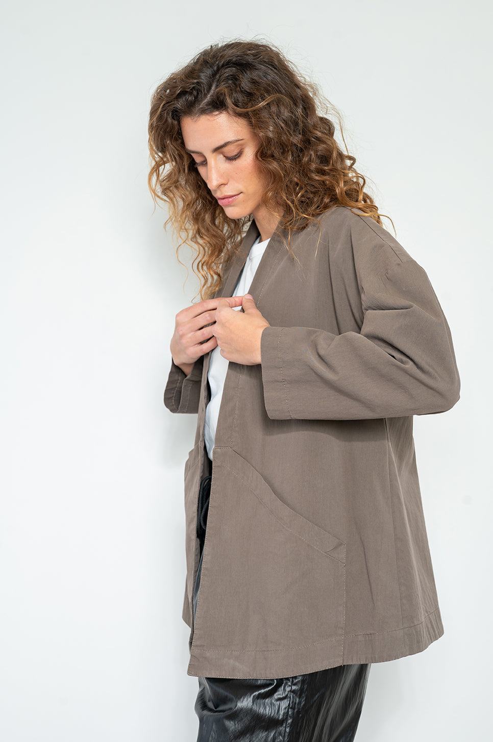 ג'קט אוברסייז פתוח בגזרה ישרה מבד אריג דק. עם כתפיים במראה שמוט ושני כיסים קדמיים פתוחים. מושלם למזגן במשרד.- מאיה: גובה 178 ס"מ. היקפים: חזה 80 ס"מ | מותן 60 ס"מ | אגן 92 ס"מ, לובשת מידה S/M.