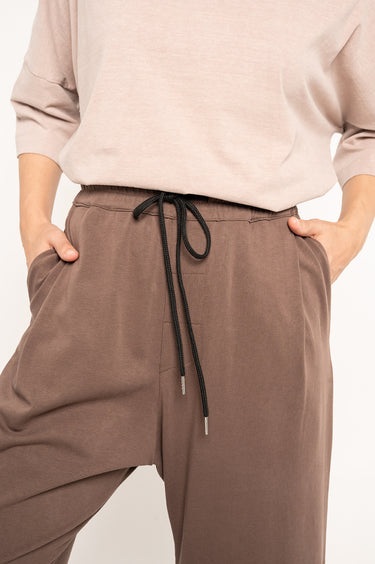 מכנסים בגזרה רחבה עם שני כיסי צד, גומי במותן ושרוך כותנה להידוק. עשויים בד כותנה רך ונעים שמאפשר לנוע ולנשום.- סומי: גובה 172 ס"מ. היקפים: חזה 82 ס"מ I מותן 61 ס"מ I אגן 88 ס"מ, לובשת מידה 0.