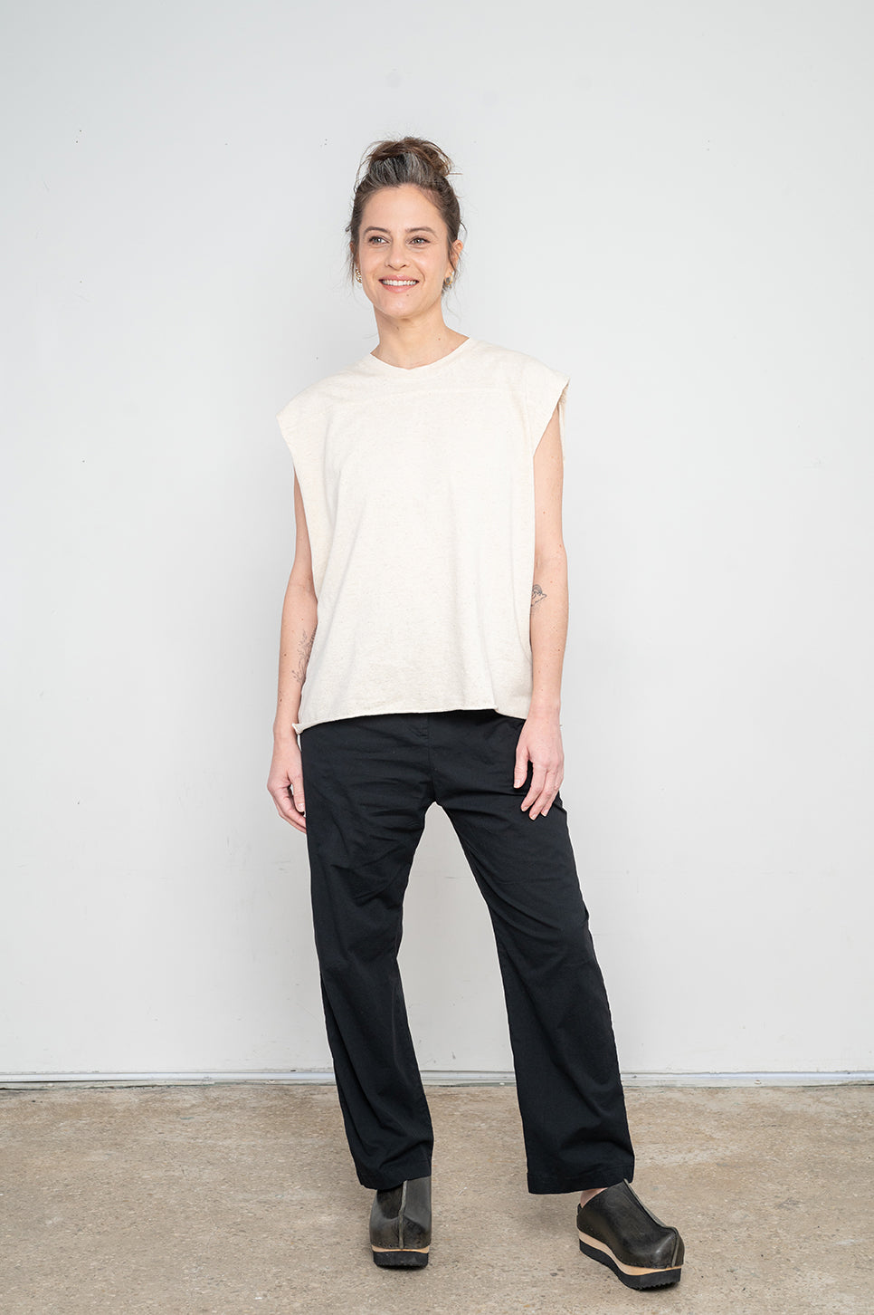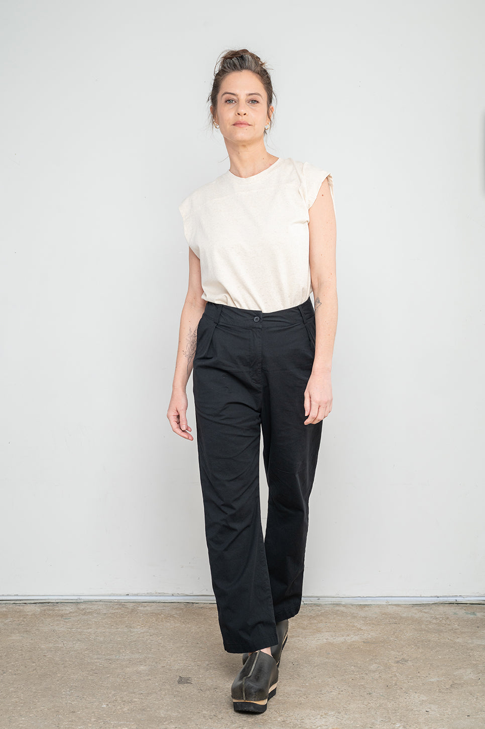 מכנסיים קלאסיות בגזרה ישרה ונקייה. רכיסה סטנדרטית מלפנים, כיסים בצידי המכנסיים ומאחור.
