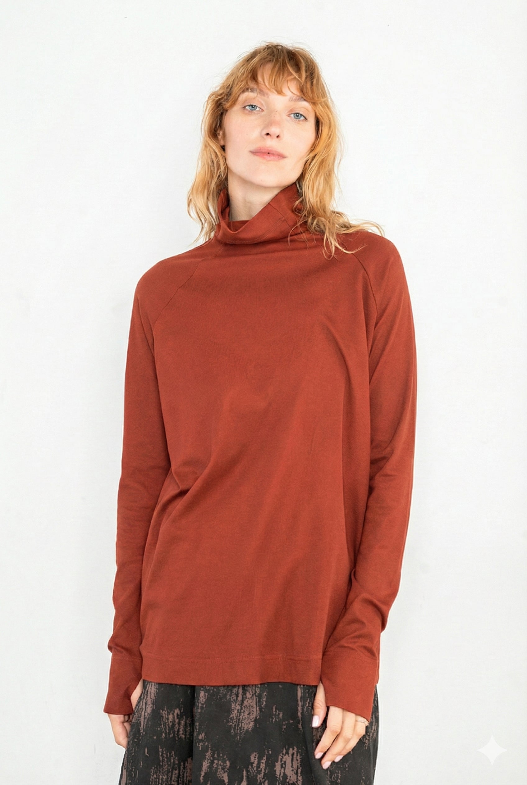 חולצת גולף ארוכה בגזרה ישרה עם שרוולי רגלן. בקצה השרוול פתח לאגודל. המאסט-האב שלנו לחורף!- אנה: גובה 178 ס"מ. היקפים: חזה 88 ס"מ | מותן 70 ס"מ | אגן 88 ס"מ, לובשת מידה 2.
