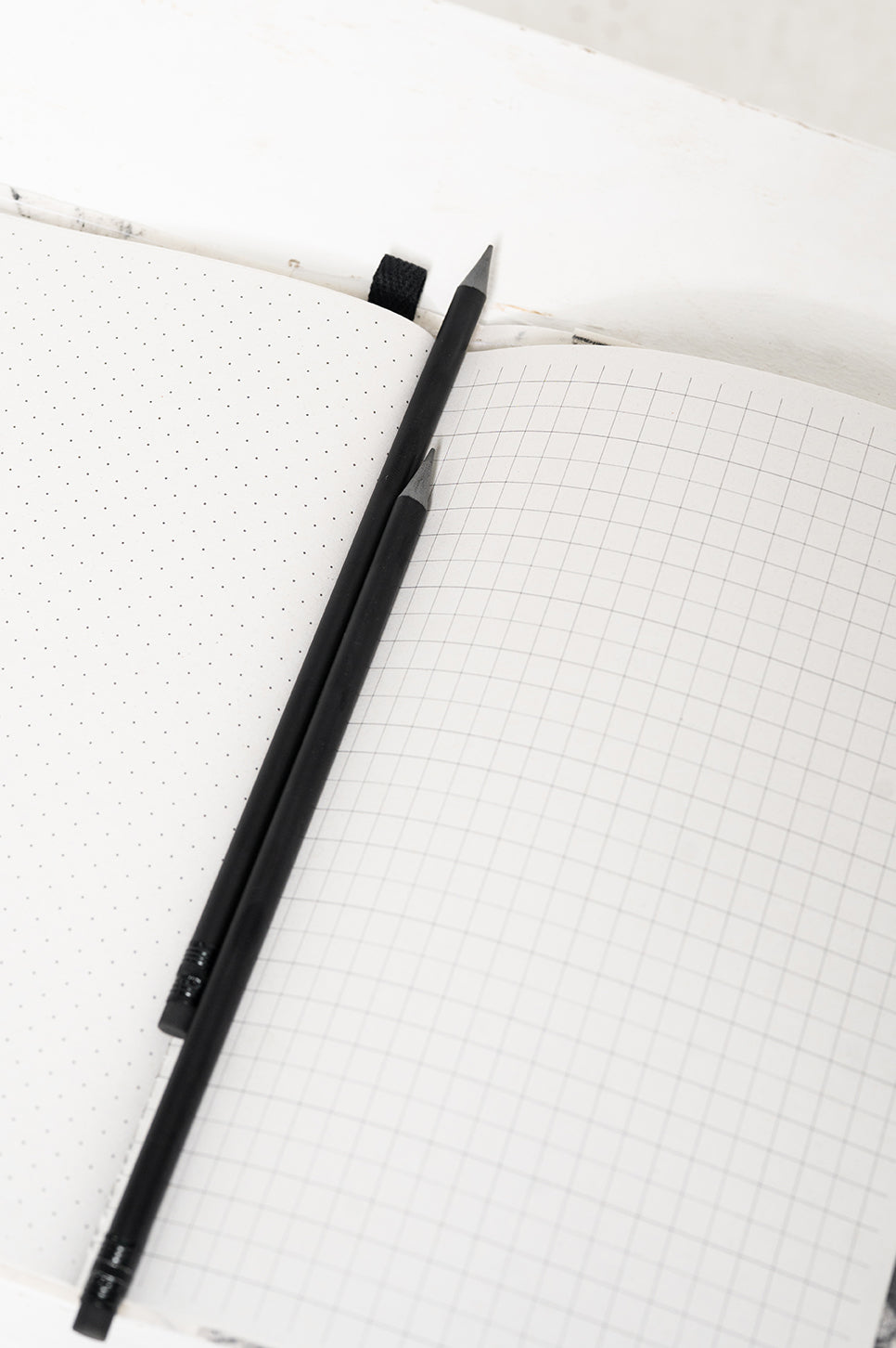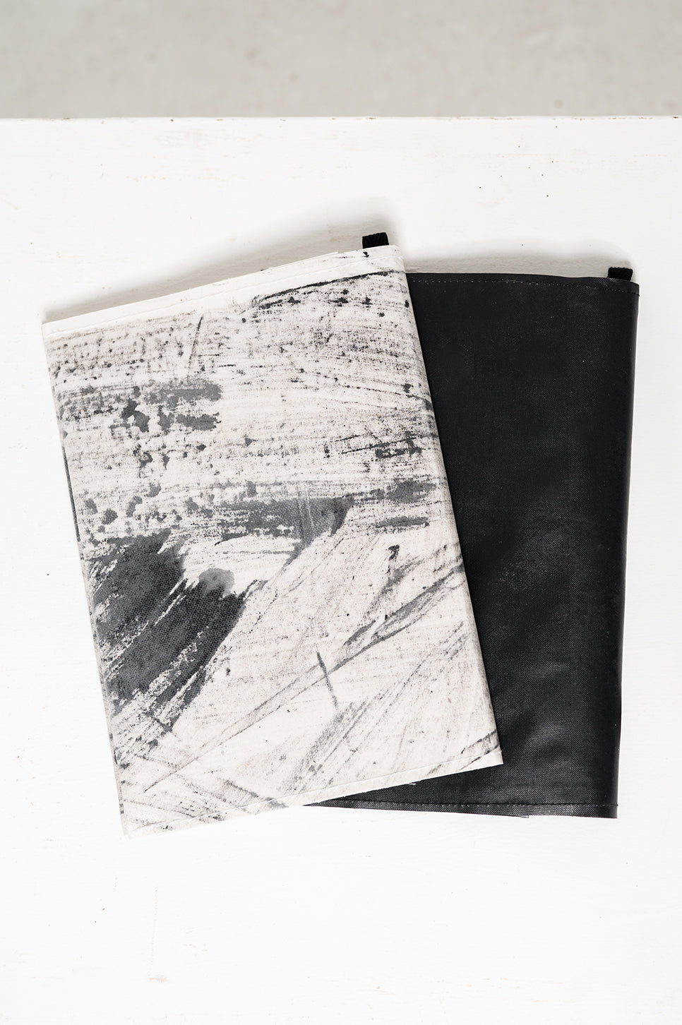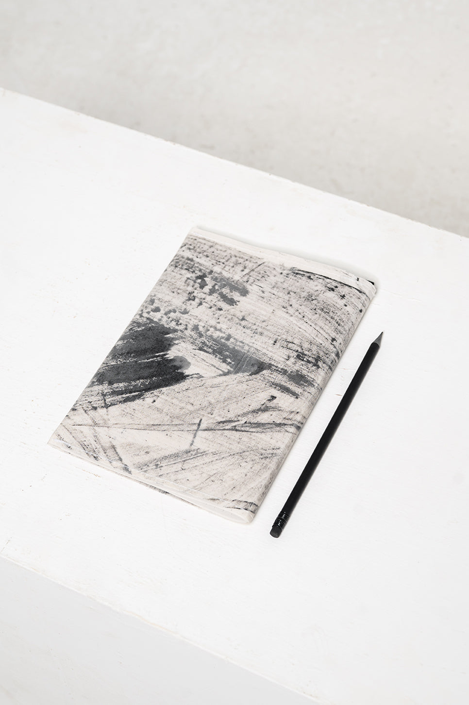 מחברת בגודל A5 מנייר ממוחזר בגריד משולב (שורות/משבצות/נקודות), עם כריכה ייחודית לשימוש חוזר עשויה למינציית בד וניילון בטכניקה ידנית ייחודית, כל אחת קצת אחרת.הרכב בד