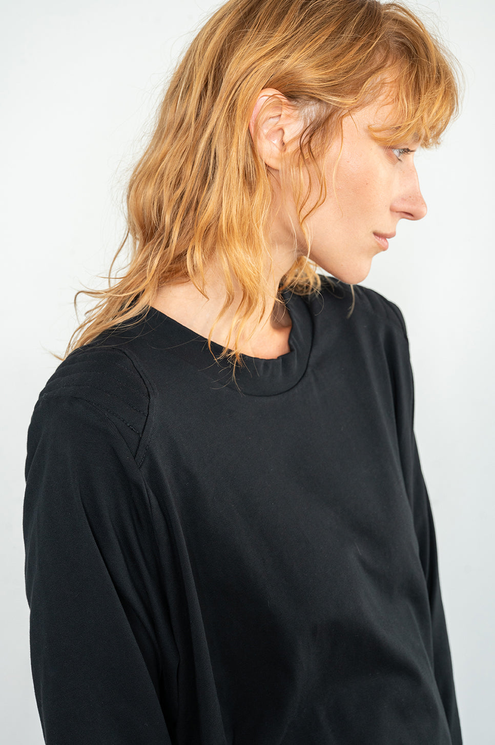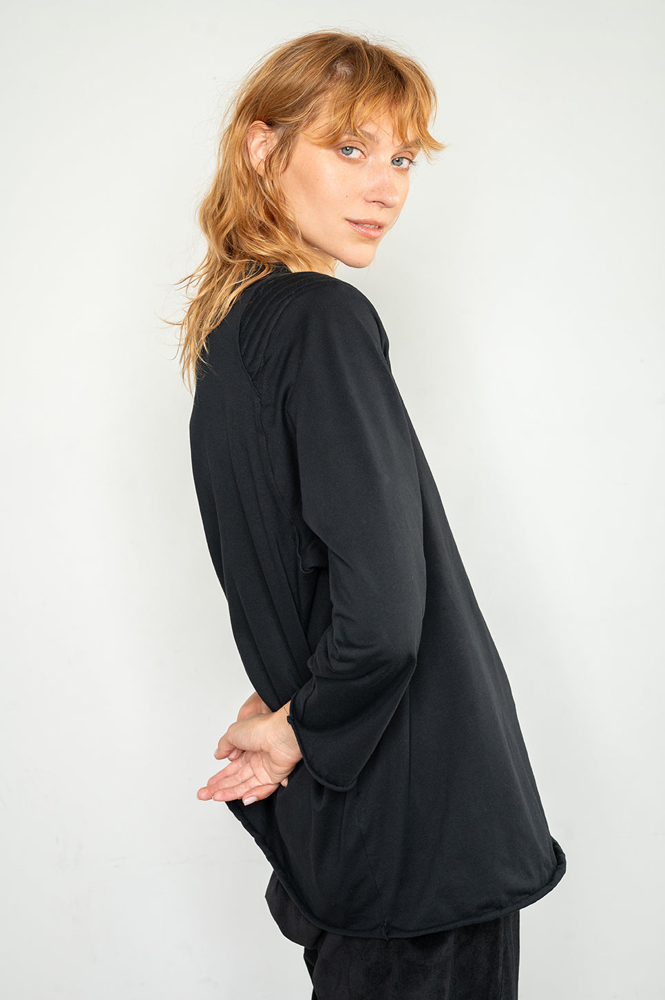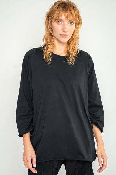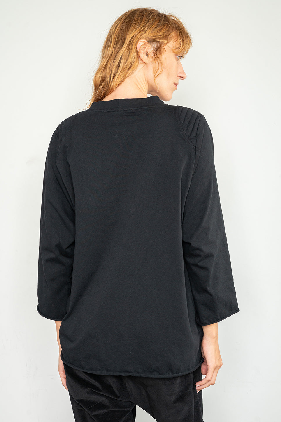 סווטשירט אוברסייז בגזרה ישרה עם כריות כתפיים בתפירה ייחודית. בעל סיומות גוף ושרוולים גזורות ומתגלגלות.- אנה: גובה 178 ס"מ. היקפים: חזה 88 ס"מ | מותן 70 ס"מ | אגן 88 ס"מ, לובשת מידה S/M.