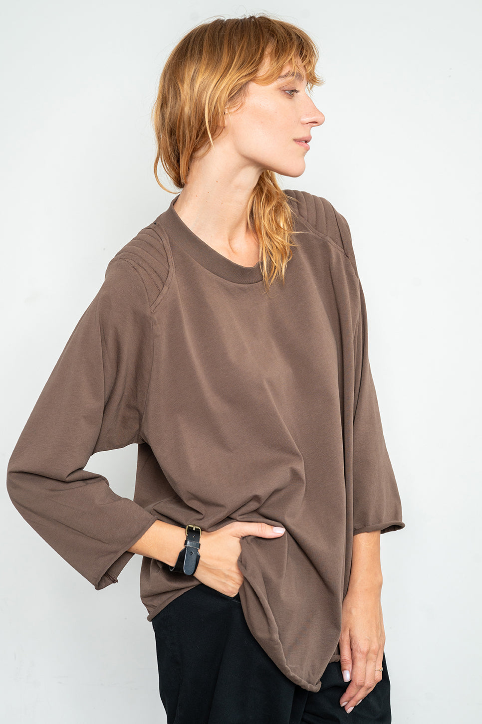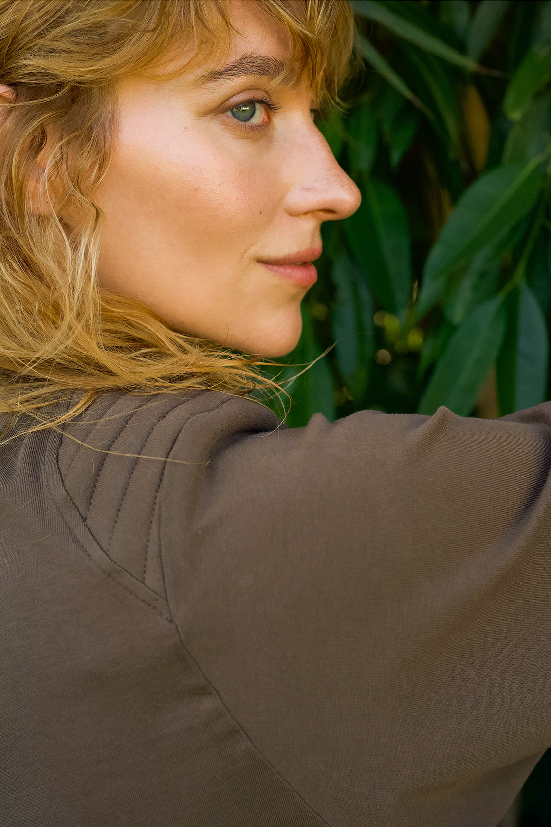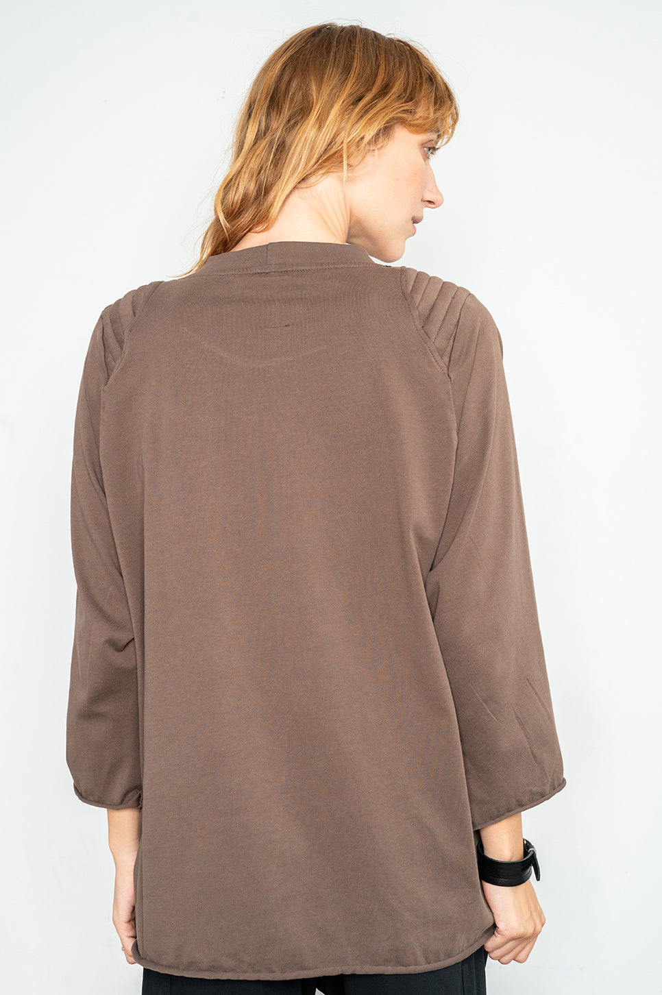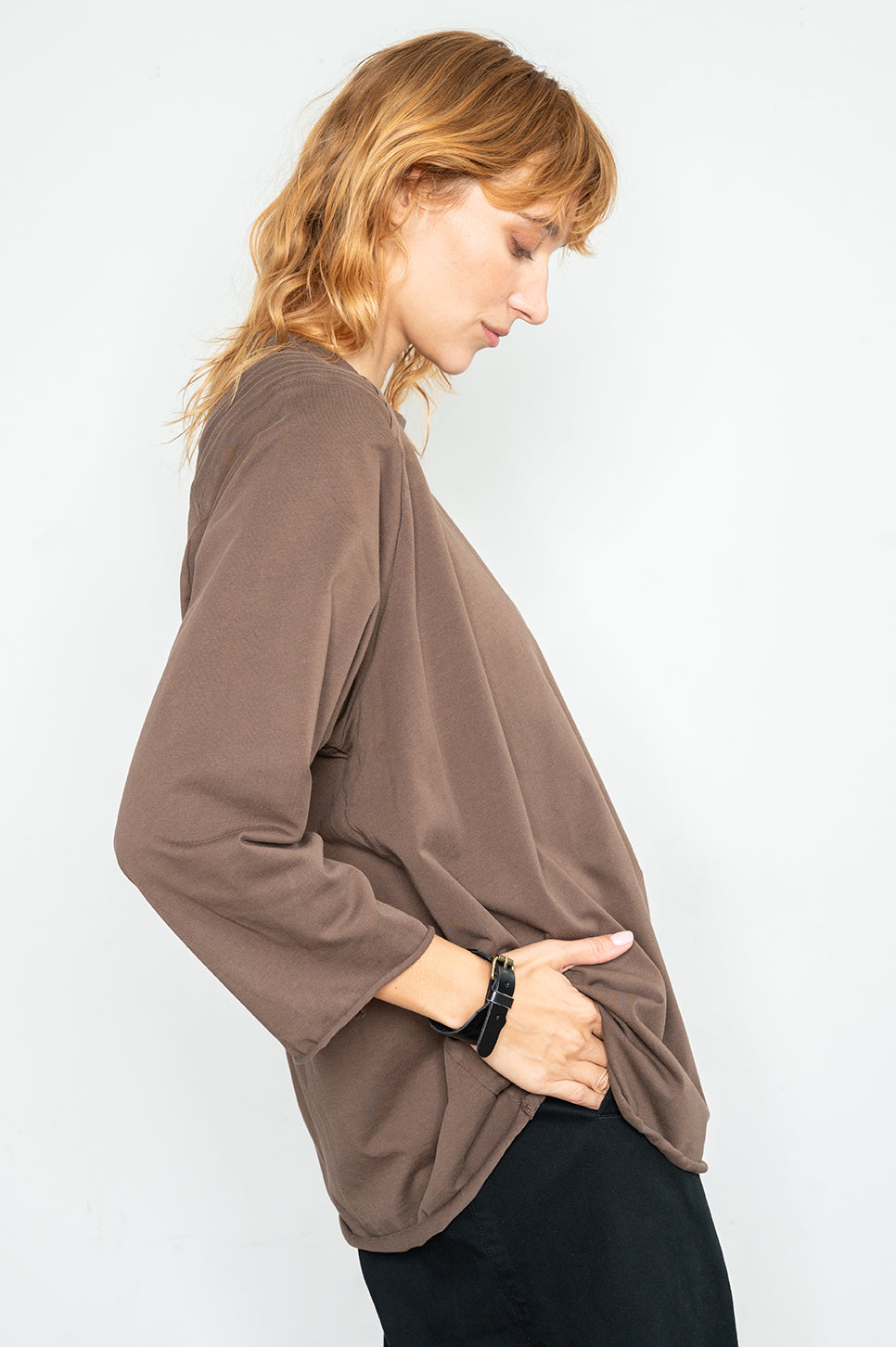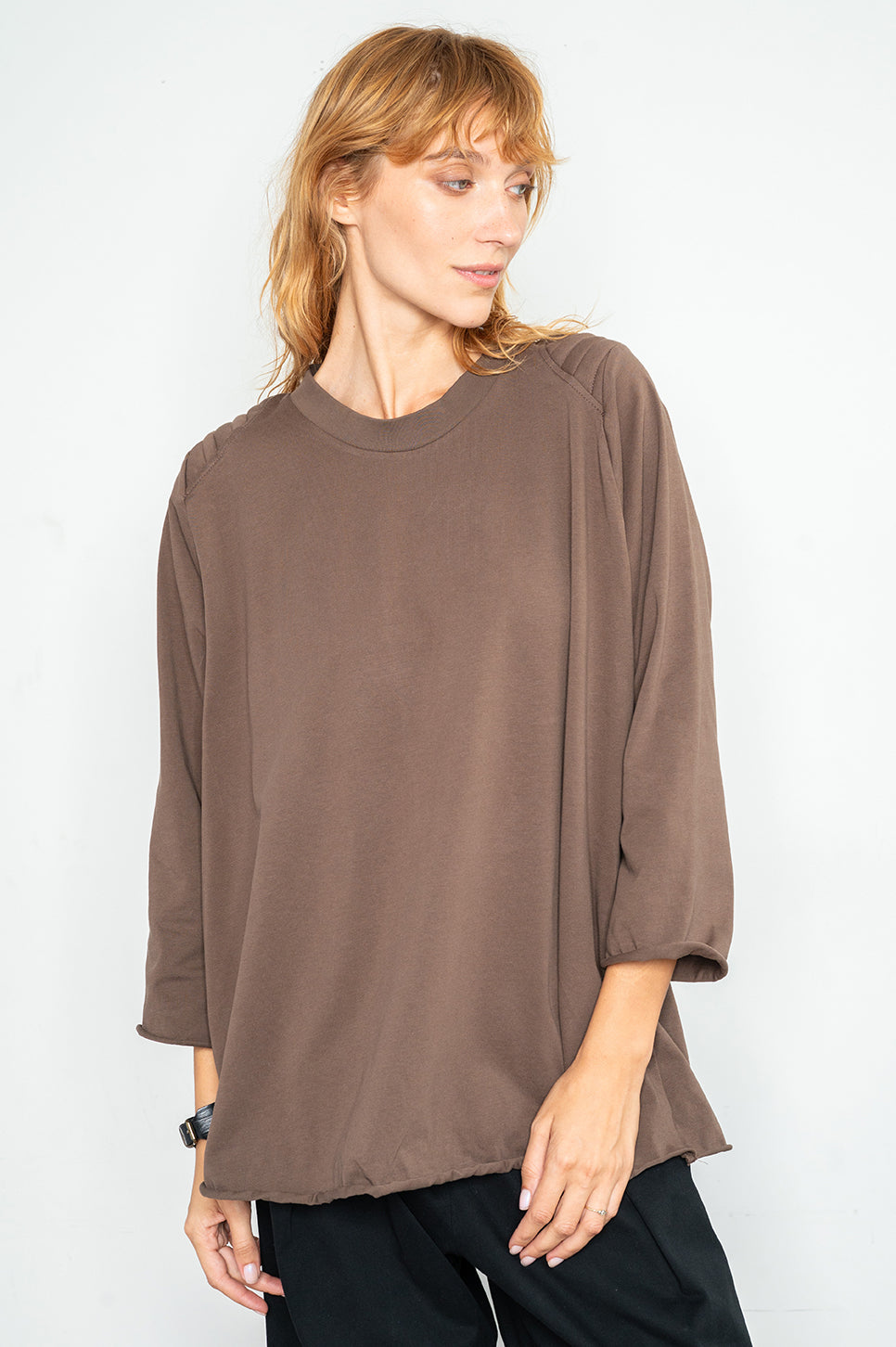 סווטשירט אוברסייז בגזרה ישרה עם כריות כתפיים בתפירה ייחודית. בעל סיומות גוף ושרוולים גזורות ומתגלגלות.- אנה: גובה 178 ס"מ. היקפים: חזה 88 ס"מ | מותן 70 ס"מ | אגן 88 ס"מ, לובשת מידה S/M.