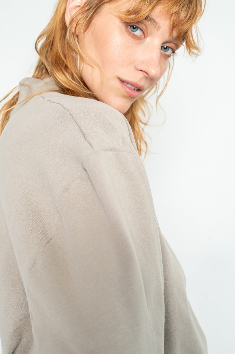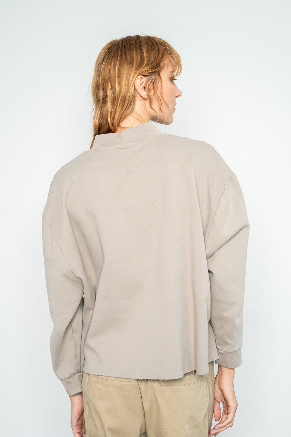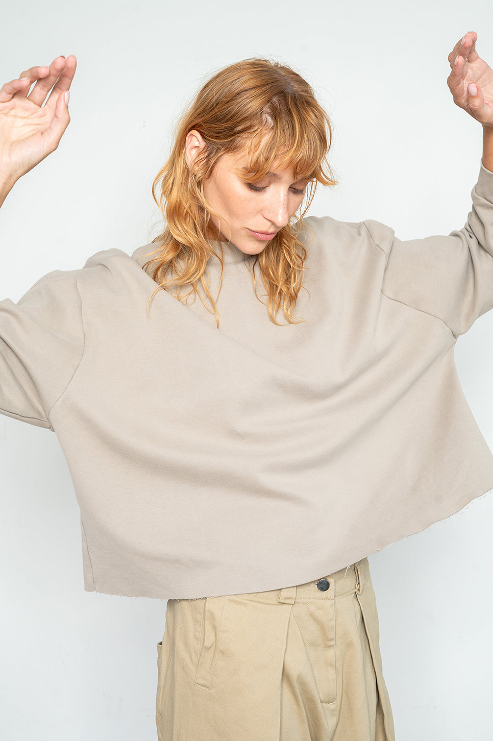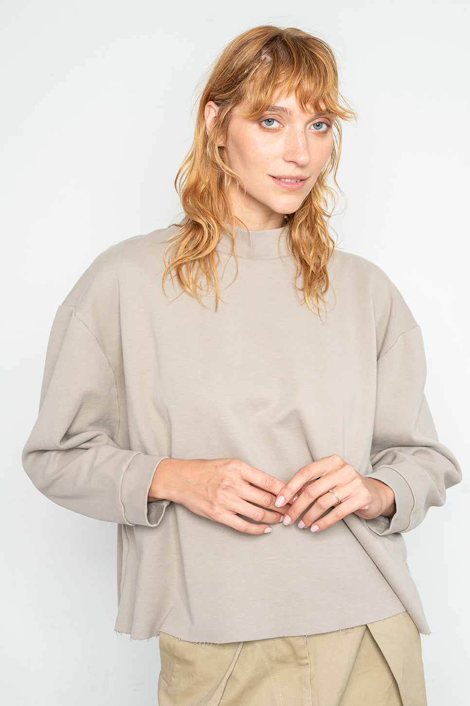 סווטשירט בגזרה ישרה וקצרה. עם מנג'ט בסיומת השרוולים והצוואר וסיומת גוף גזורה במראה פרום. אנה: גובה 178 ס"מ. היקפים: חזה 88 ס"מ | מותן 70 ס"מ | אגן 88 ס"מ.הרכב בד