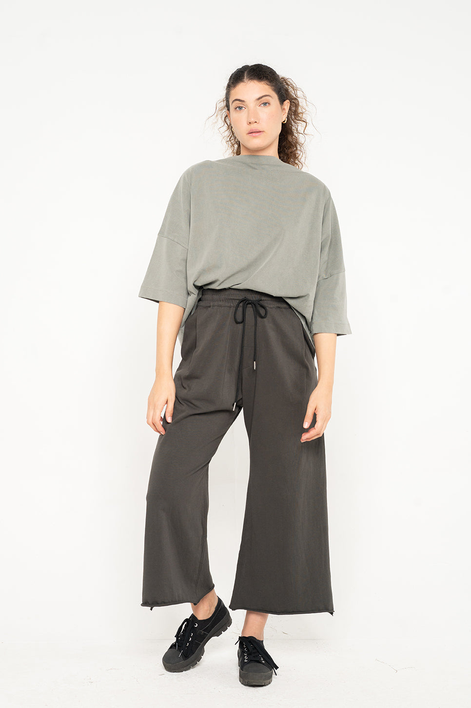 מכנסים בגזרה רחבה עם שני כיסי צד, גומי במותן ושרוך כותנה להידוק. עשויים בד כותנה רך ונעים שמאפשר לנוע ולנשום.- סומי: גובה 172 ס"מ. היקפים: חזה 82 ס"מ I מותן 61 ס"מ I אגן 88 ס"מ, לובשת מידה 0.