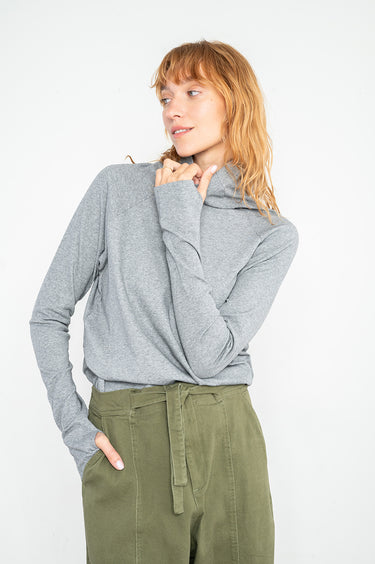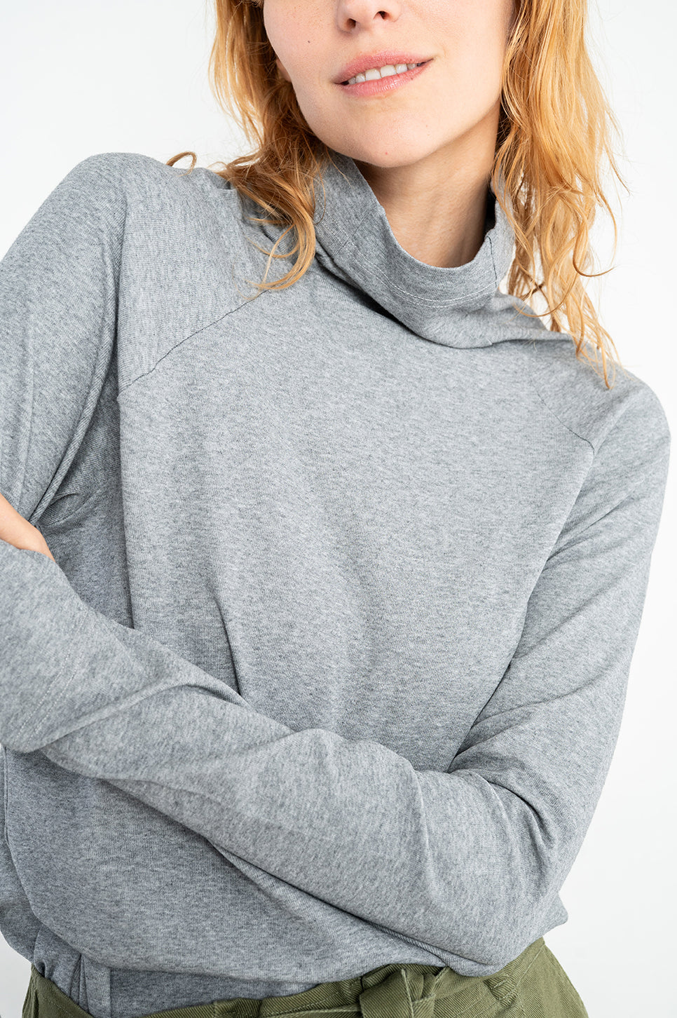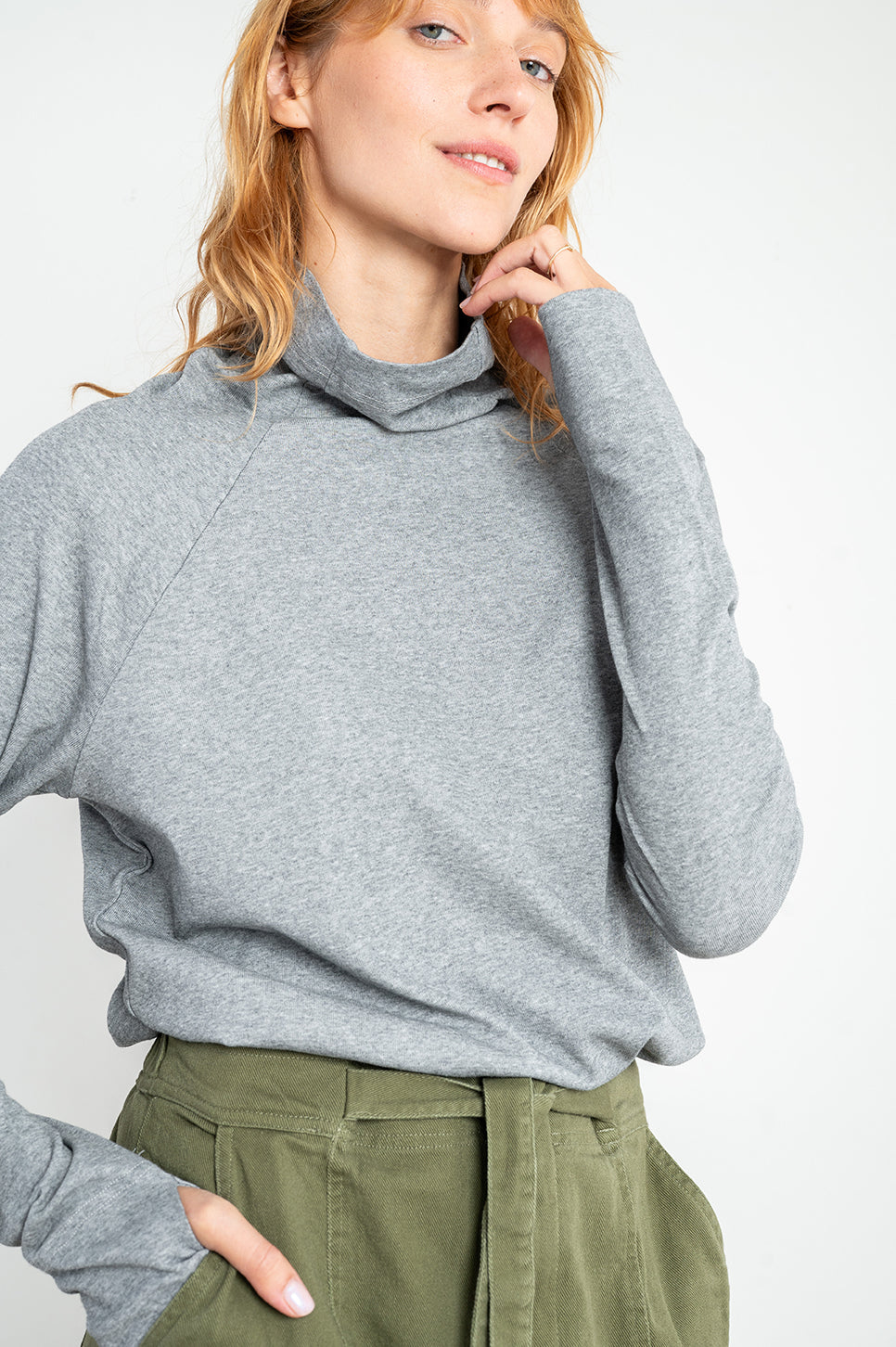 חולצת גולף ארוכה בגזרה ישרה עם שרוולי רגלן. בקצה השרוול פתח לאגודל. המאסט-האב שלנו לחורף!- אנה: גובה 178 ס"מ. היקפים: חזה 88 ס"מ | מותן 70 ס"מ | אגן 88 ס"מ, לובשת מידה 2.
