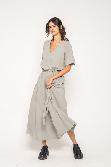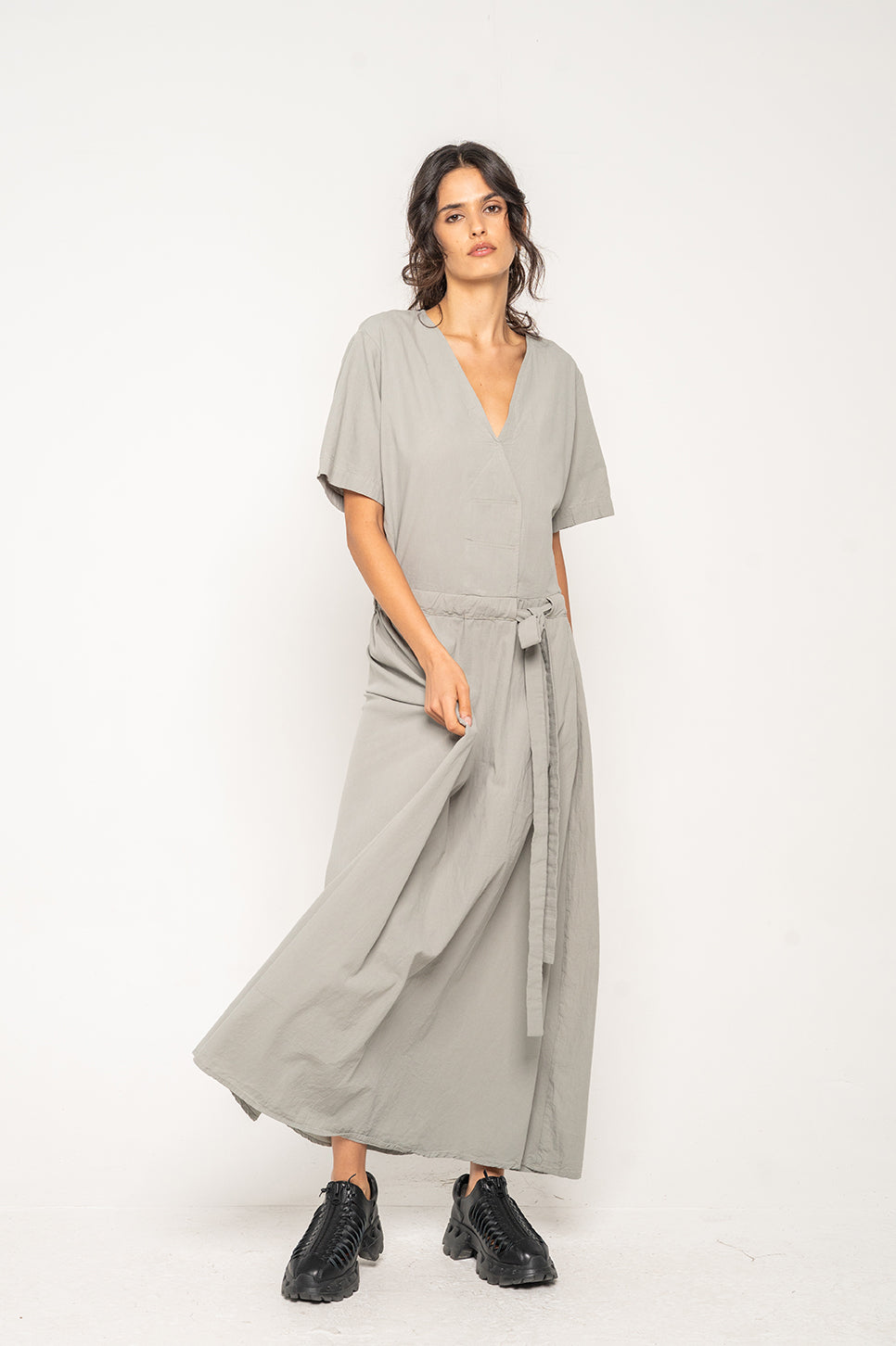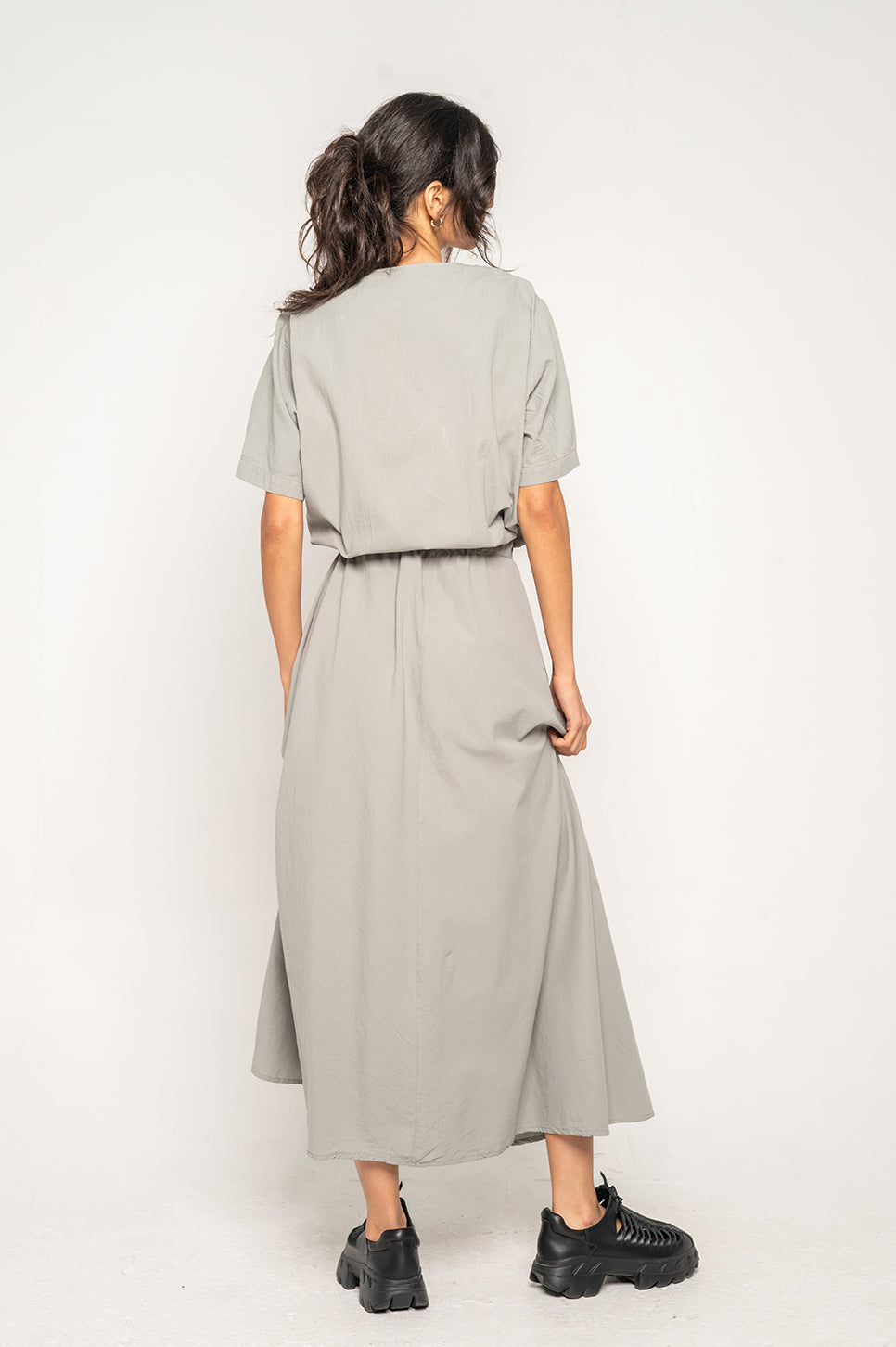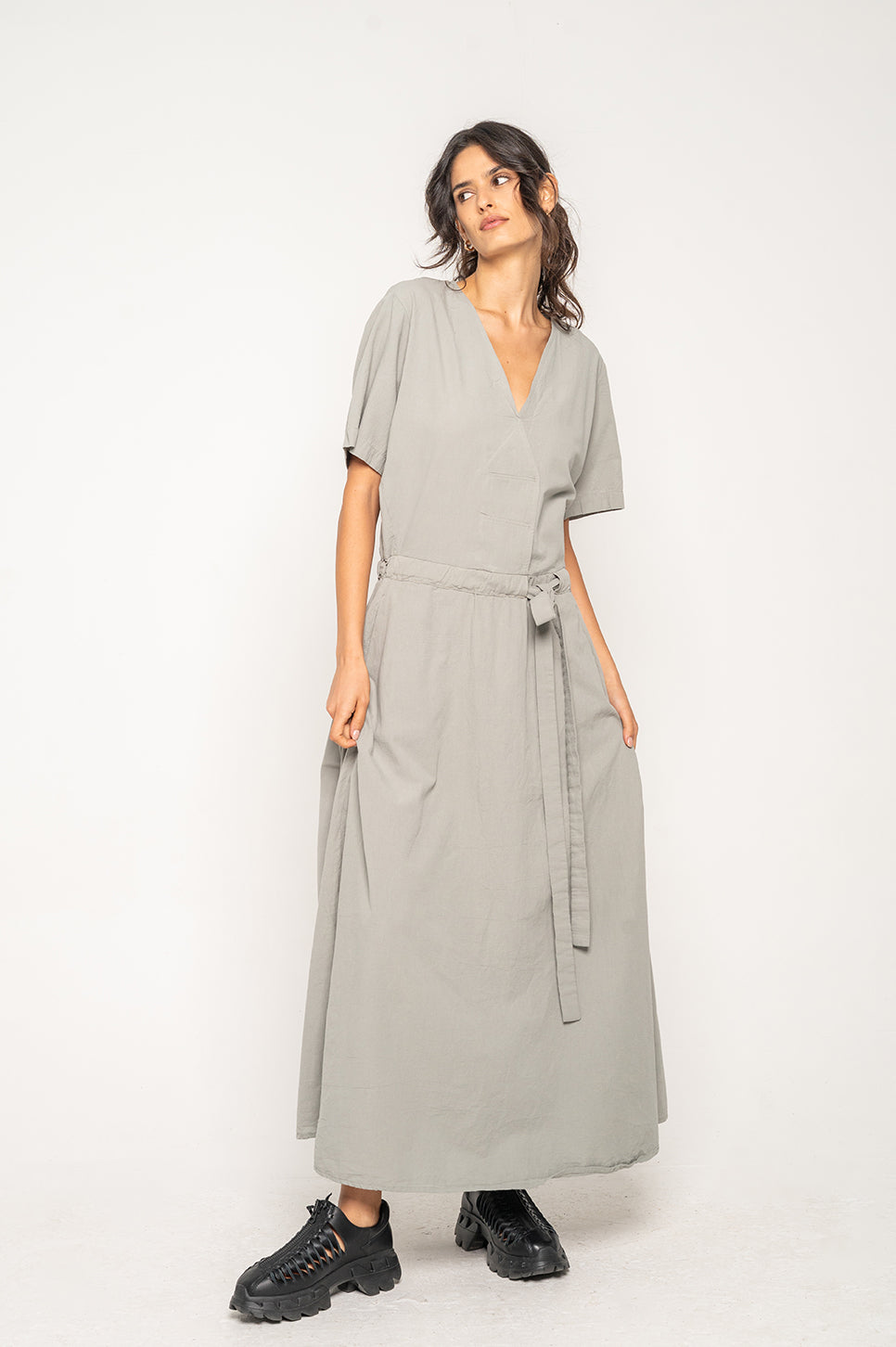 שמלת מקסי בגזרה דמוית מעטפת עם תפר מחבר בחזה, כזאת שעוברת בקלות מלוק יום לערב. שרוך לכיווץ בקו המותניים מאפשר משחק והתאמה לגוף. בעלת שרוולים קצרים וכיסים בתפרי הצד. עשויה בד כותנה דק ואוורירי.- יובל: גובה 170 ס"מ | היקפים: חזה 86 ס"מ | מותן 65 ס"מ | אגן 95 ס"מ, לובשת מידה S/M.