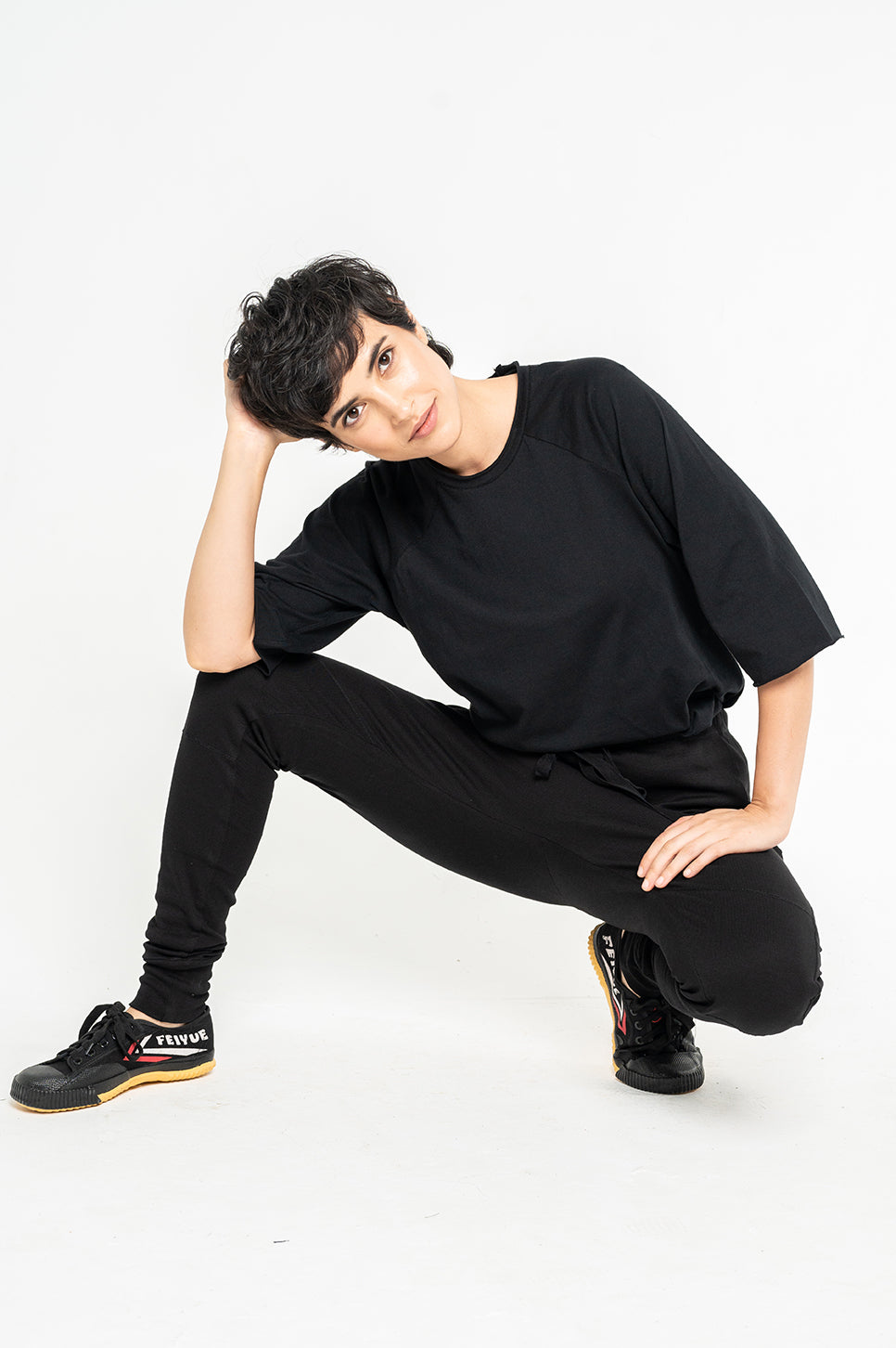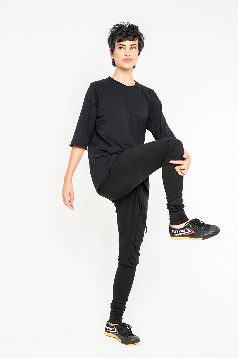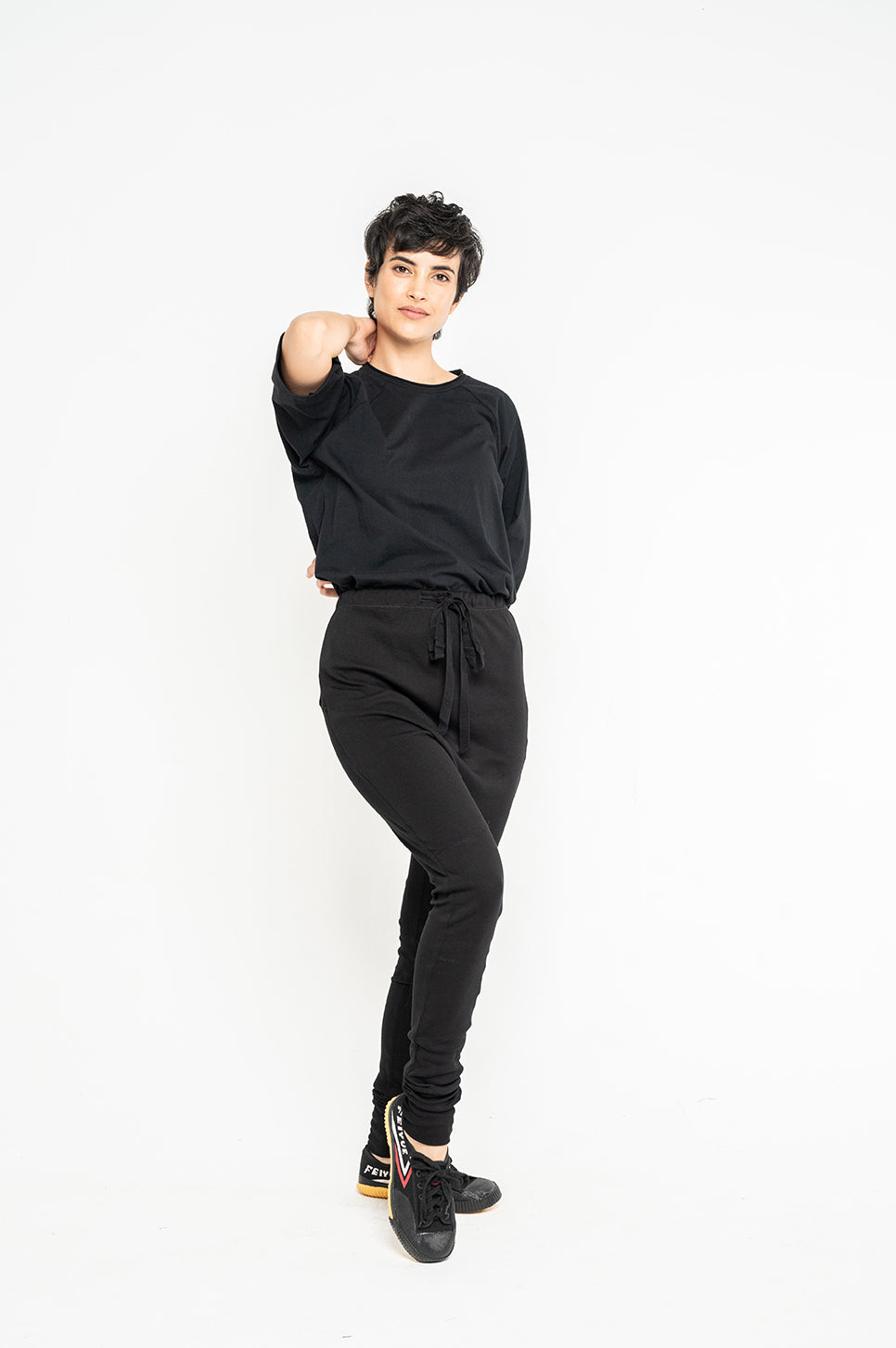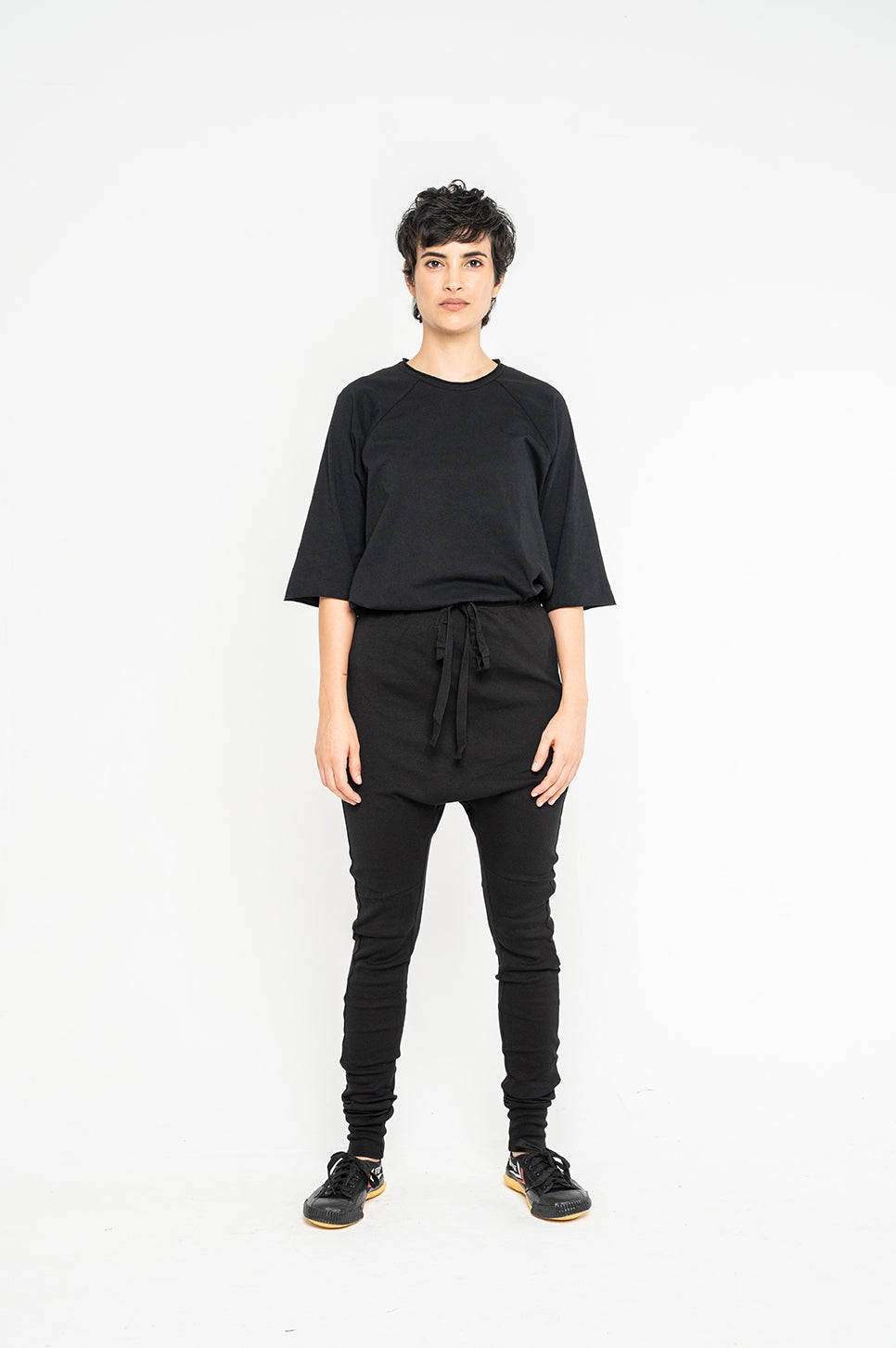 מכנסי גטקס בעלי שק עמוק, גומי רך בחגורה עם שרוכים להידוק ופאטצ'ים בברכיים. עשויים בד סריג כותנה רך, גמיש ומפנק.- רנא: גובה 163 ס"מ. היקפים: חזה 83 ס"מ | מותן 68 ס"מ | אגן 93 ס"מ, לובשת מידה 0.